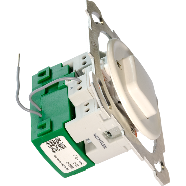Das Modul im Spezialgehäuse Flextron kann direkt an der Rückseite von "Feller Taster/Schalter" befestigt werden |